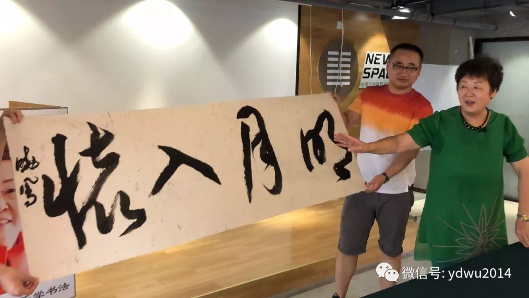 第六讲可谓形神兼备,点评与示范结合,读帖与会意相融,最后随着曼妙舒徐的古典音乐的飘起,先生沉着、舒缓、刚柔相济、收放自如地挥洒“明月入怀”而进入高潮,却嘎然结束,浮躁因以沉寂,温柔相携恬静。