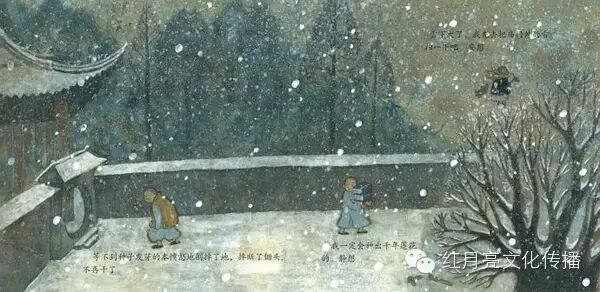 同时,《安的种子》亦是绘者黄丽等待和坚持之果。为了还原寺庙的真实场景,黄丽曾多次雪后拜访西安南郊的兴教寺,在寺庙僧人为众生情怀的感染下,倾注了长达6年的心血。多处细节的反复打磨让我们体味到作者的认真和执着,收获“丰子恺”大奖亦是意料之中。