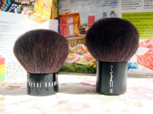 因为BB的刷头较小于MAC,所以更适合用来上腮红,散粉就不用说了。而MAC应该只适合上散粉,不太适合上腮红,因为刷头会过大~!