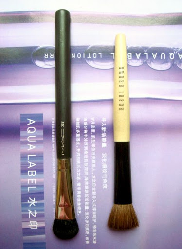 这两只都是专门的眼部打底刷。右边是MAC227#;左边是BB的。