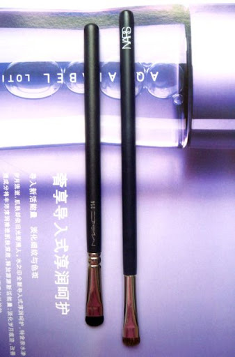 这两支刷用于眼线晕染,下眼影上色等都很出色。左边是NARS15#,右边是MAC214#。