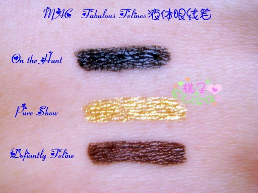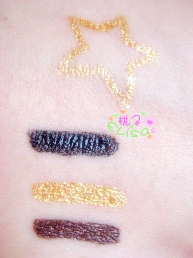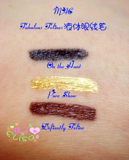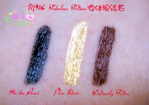 这是MAC第一次出这样的彩色眼线液,当然我也必收几色啦~!不过当时还蛮理智的,只收了两支日常的,还有另外一支金色的~!oh