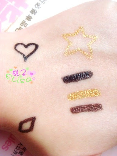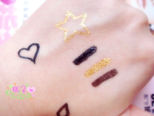 眼线液的防水性和持久度都很给力,笔尖细可以化出准确地线条,上色也非常容易。九个颜色都很美貌,大部分带细闪。金色银色都是金属色,超级闪耀。其他色微闪,日常也可以用。这款Superslick液体眼线笔可以创造出具有挑战性的猫眼效果,因为某些角度看上去,眼线液是反光的。防水效果比lunasol的猫眼石眼线液要好,整个就像一层膜一样,所以不会晕,超级服帖的固定在那里~!