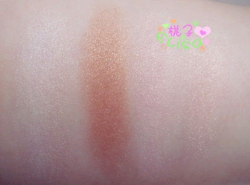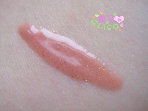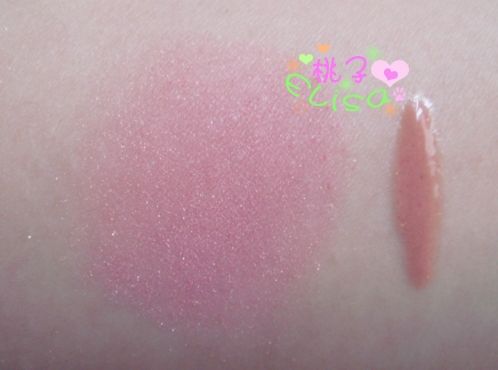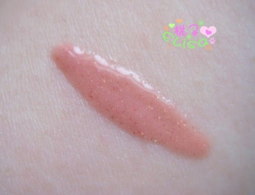 里面有金色和粉红色的亮粉,涂上嘴没有这么粉红,是纯裸的颜色~!
