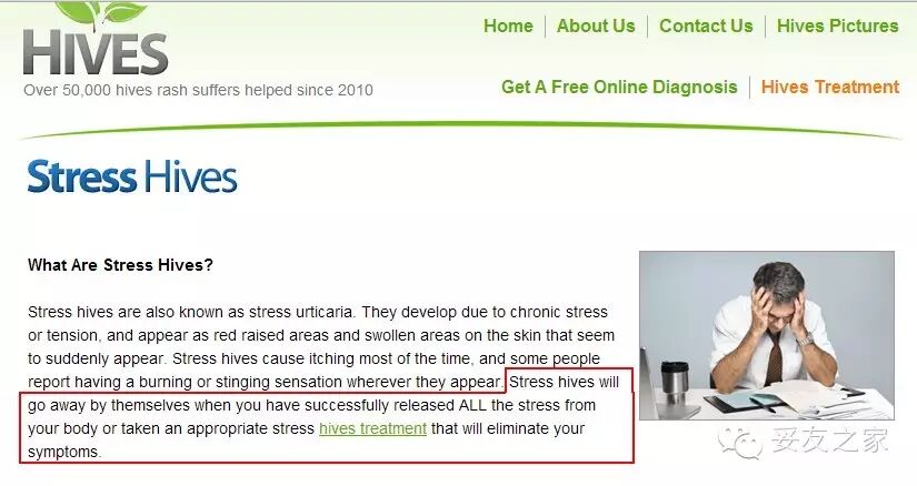 hives(压力性风疹)。并且明确告诉我,stress hives其实会随着压力减小自动消失,如果配合适当的治疗好的会更快。