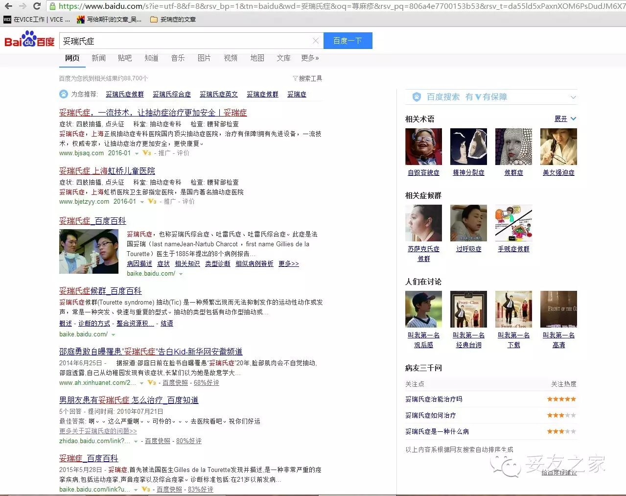 related to Tourette syndrome”(与妥瑞症相关的广告)。并用直线将打广告的网站和下面正规搜索结果区分出来。而我们唯一许可的官方搜索引擎百度根本没有,结果不言而喻。Money