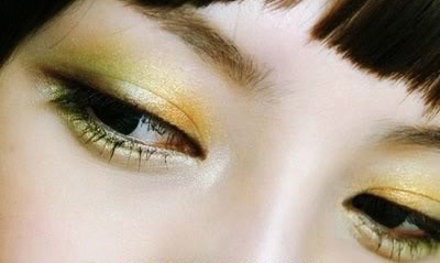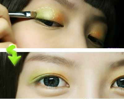 色彩浓郁鲜嫩的眼妆让人眼前一亮,草绿与中黄色的靓丽搭配一展清新气质,感觉空气都活跃起来,充满了和谐与亲切的味道。
