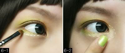 6-1、在下眼睑铺上一层浅绿色眼影,与上下相呼应;