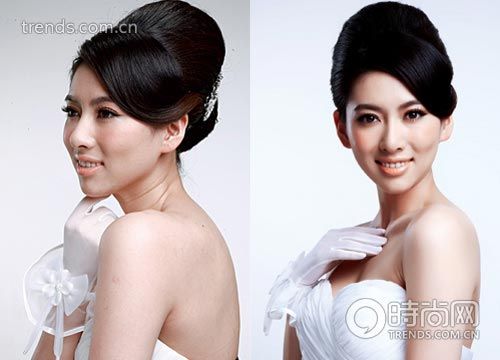 新娘:这款盘发比较适合端庄而具有成熟气质的新娘。