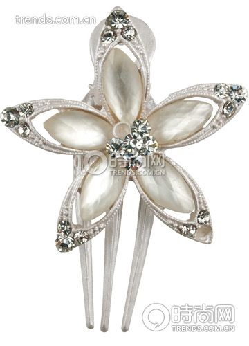 这款盘发不适合用纱质头花作为配饰,也不适合用头纱,选择复古银质发饰最佳。将它固定在下部的发髻处,堪称“神来之笔”。