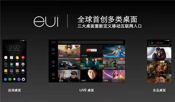 在做手机的时候,以视频内容见长的乐视将自己的最大优势深度结合了进去。例如在新发布的手机上可以实现三种桌面,除了我们最常用的“应用(APP)桌面”之外,还能够实现横屏模式的“LIVE桌面”,可以在手机上同时开9个屏幕,其中3个播放视频直播节目,当然大部分节目都是乐视拥有独家版权的视频节目。此外,用户还可以实现“乐见桌面”,打破应用与UI边界,视频即入口,这仍然是围绕乐视见长的视频大做文章。