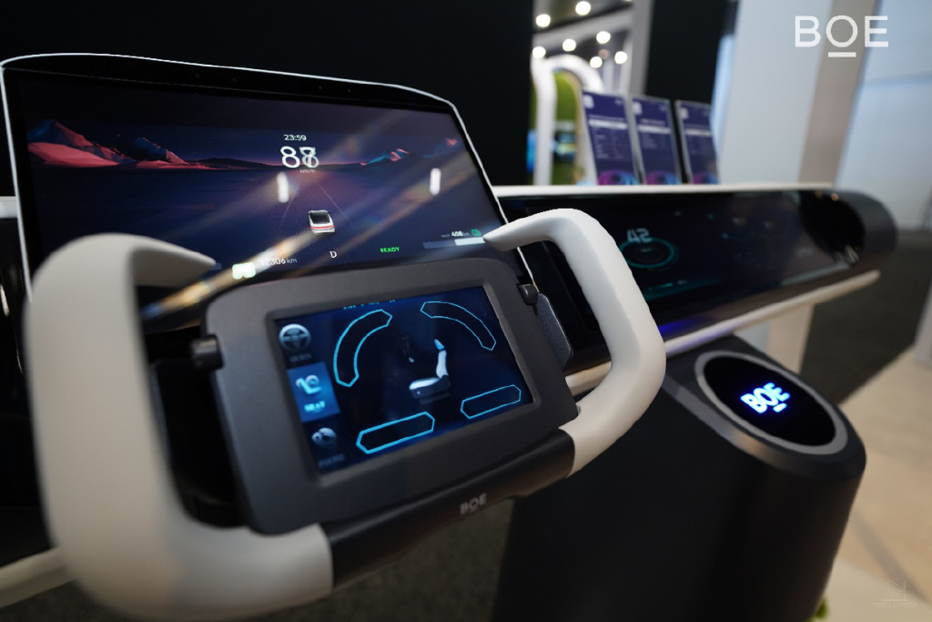 汽车的智能化也是未来的发展方向,并正在给显示行业带来更多的应用场景。在这次展会上,BOE(京东方)专门打造了极富未来感的智能座舱创新体验区。在驾舱内,仪表盘不仅可以实现裸眼3D视效,还具备触觉反馈功能,可实现悬浮触控交互;车内搭载的智能感光多联屏还可根据环境智能调节亮度,带来全新的智慧驾乘体验。此外,在极具颠覆性的量子点显示领域,还重磅推出了全球首款55英寸8K AMQLED显示产品,为AMQLED技术的量产应用迈出了重要的一步;目前全球最大尺寸的95英寸8K OLED显示屏,尽显在大尺寸OLED领域的领先技术实力。