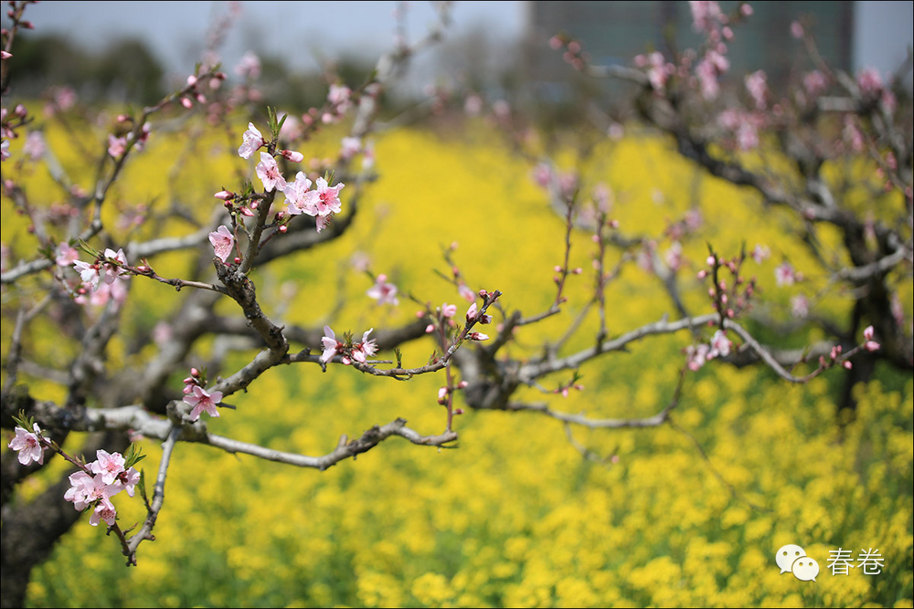 南汇桃花村距离市区大约50公里的路程对于开车人而言几乎是转瞬即至,当我们临近桃花村门口时依然没有看到大片桃花出现。我正有些疑惑是否走错道路,但仅仅过了几秒钟当我们的创酷穿过一座公路桥洞,眼前突然出现一片绚烂的粉红色!这竟然是一条用桃花装饰的林荫道,穿过它前面就是我们的目的地南汇桃花村了。