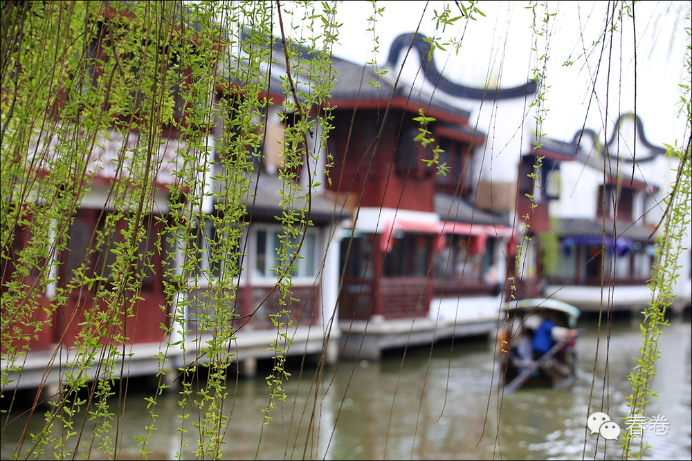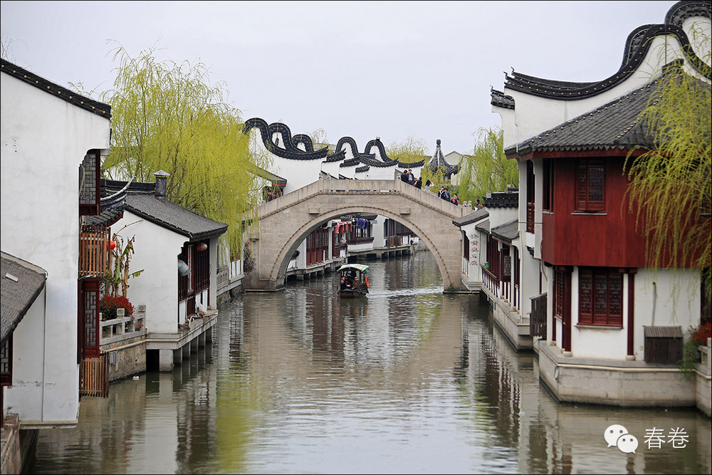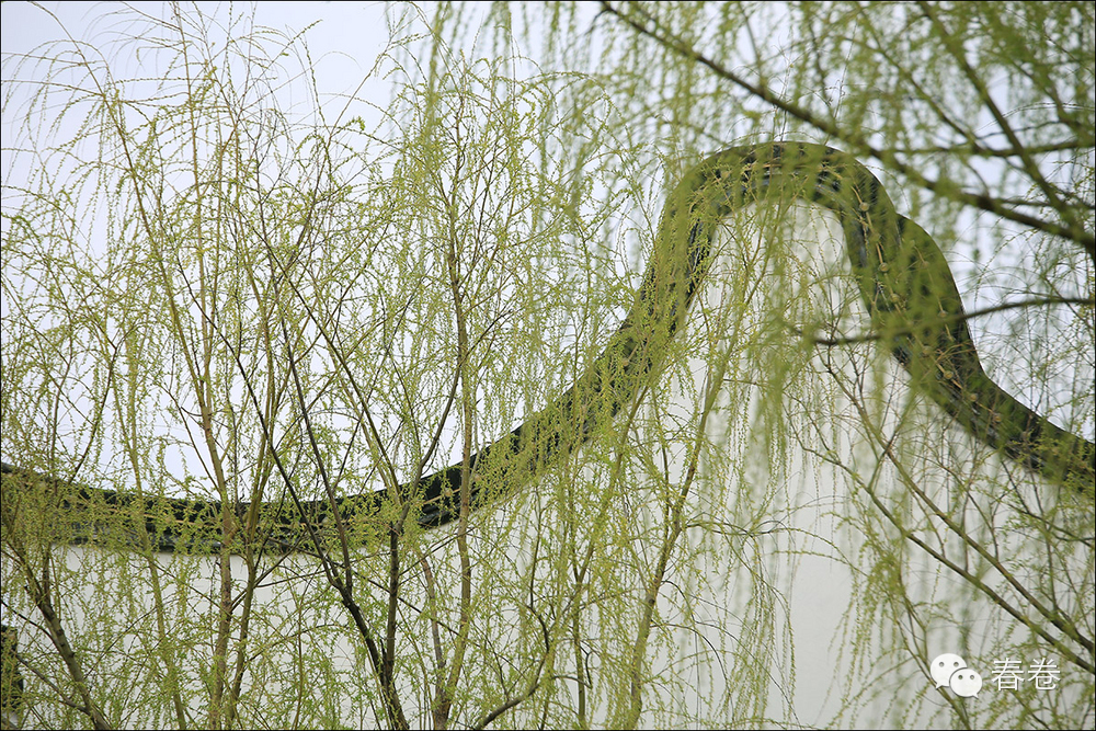 只见千百条嫩绿的柳条或是在古镇中心的小河两边轻轻摇曳,或是从极富江南特色的马头墙后调皮探出。空气中弥漫着刚出锅的下沙烧卖与草头饼的好闻香气,不禁让我们一行几个食指大动。