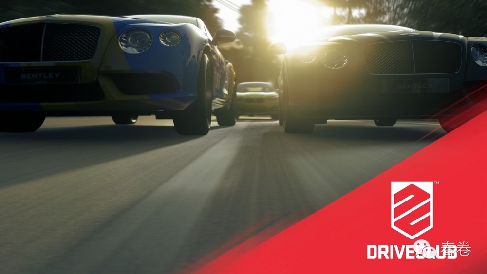 加入游戏logo边框的两辆宾利赛车。这样的视角同样在真实世界很难获得