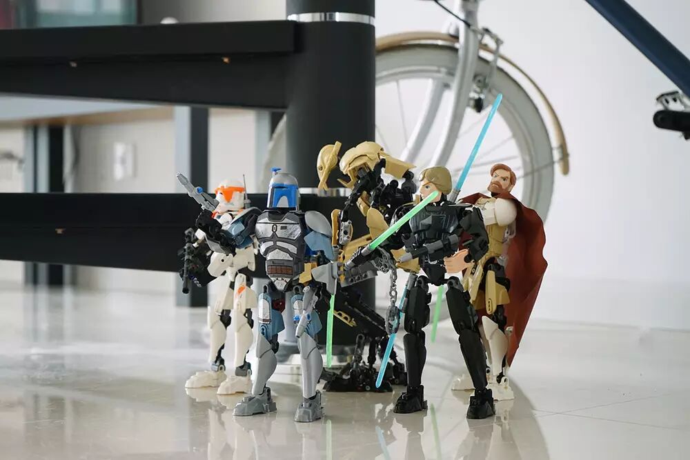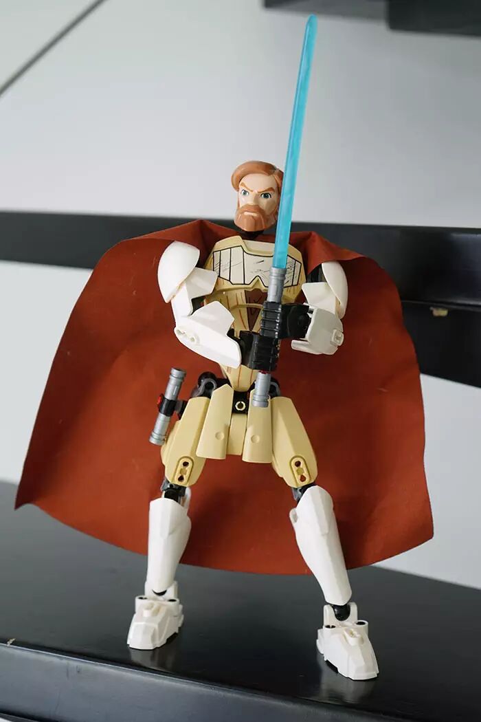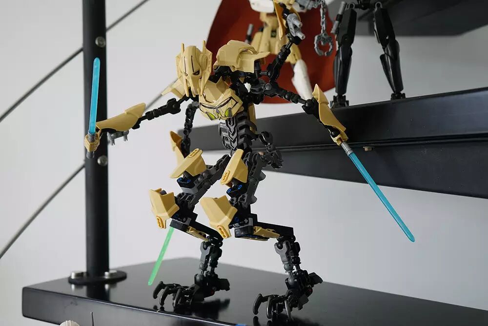 在马云家搜罗一番后,目前我手头共有五个玩具:包括格里菲斯将军、欧比旺、卢克天行者、詹戈菲特和克隆人科迪指挥官。其中格里菲斯将军玩具体积最大(完成后身高接近30cm),也最复杂(玩具颗粒数达到186),所以厂商定位的儿童年龄是9-14岁;而其他几个角色则相对简单(大约在8X块颗粒),体型也略小一点,所以7-12岁的孩子是其目标人群。