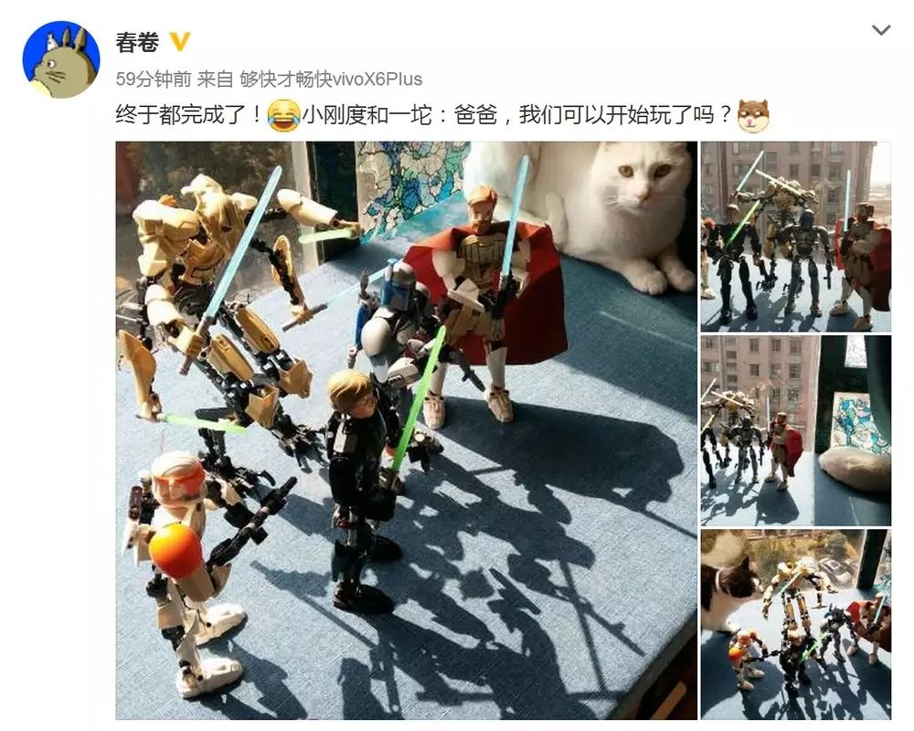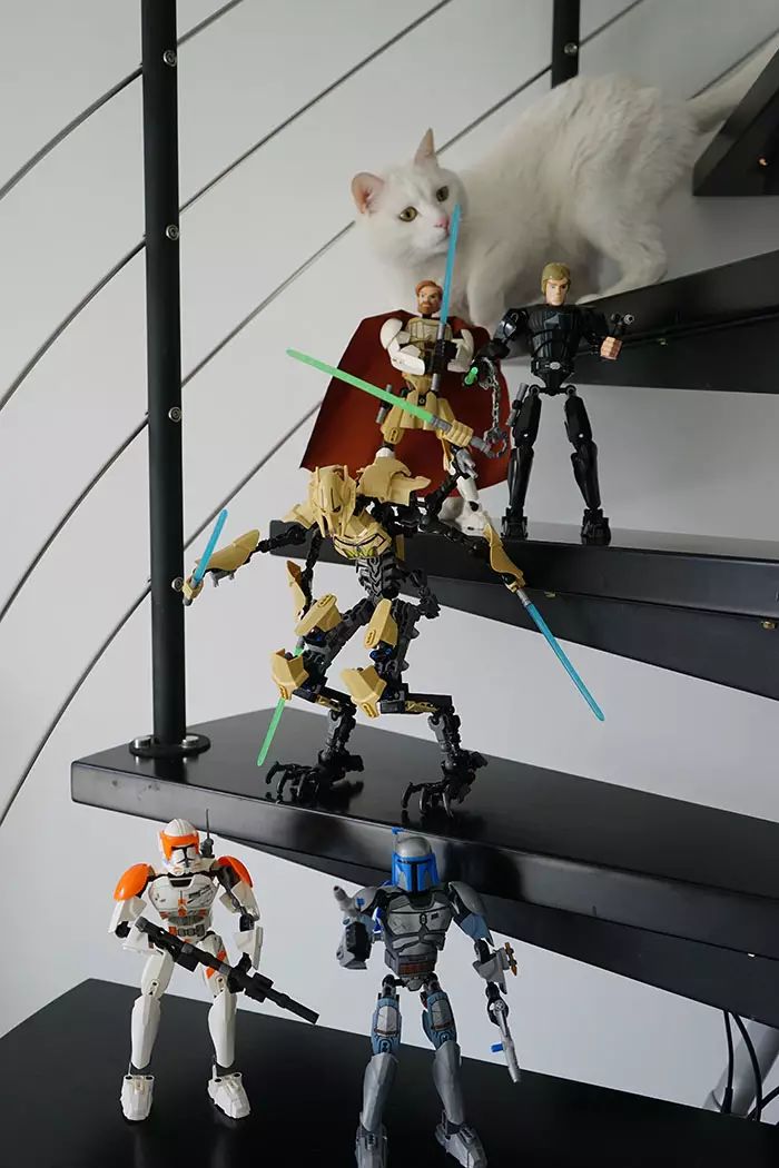 昨晚我在微博上晒了两张家里小猫和自己新完成的星战人物拼装玩具的合影,引来大家的好奇。呃,今天早上爬起来一看,放在飘窗上的三位星战勇士已经被喵星人扫趴下两个,还有一位惨痛的掉在地上连脑袋都滚落一边——真是太惨了!