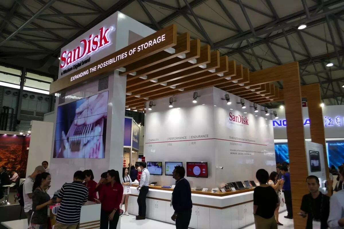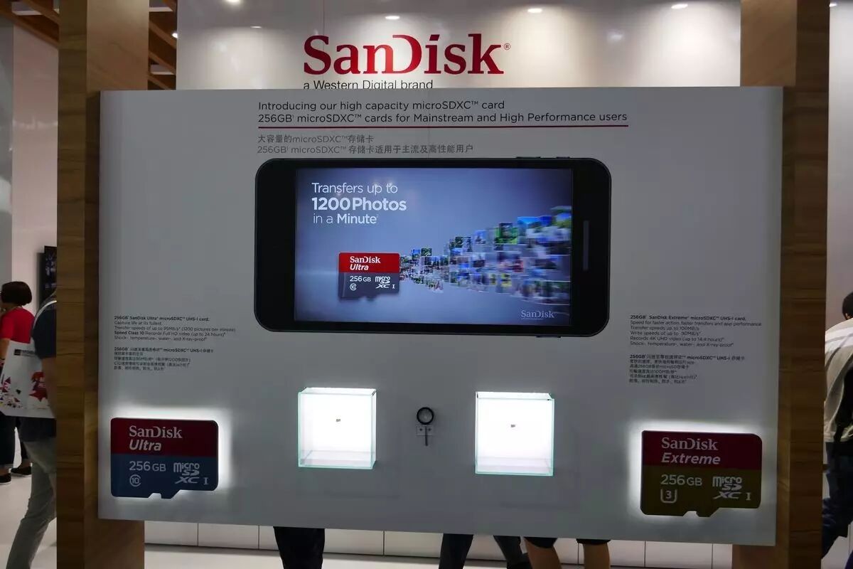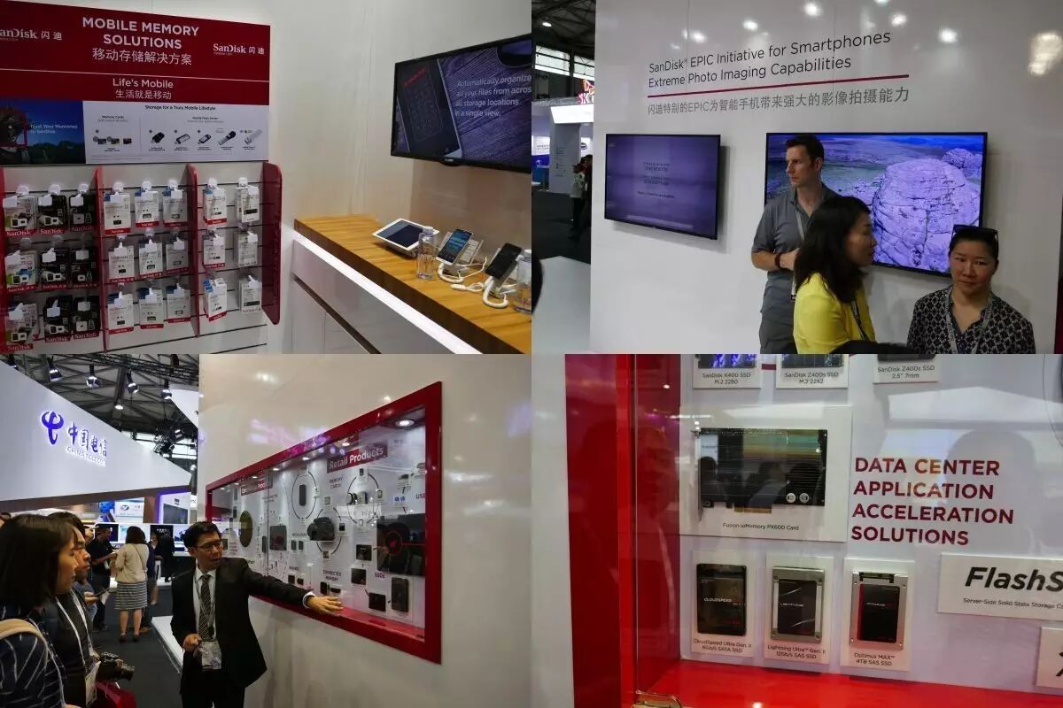 闪迪今天媒体沟通会的主要内容有两个:一个是他们已经与今年5月12日正式成为西部数据的旗下品牌,所以在展台上红色的闪迪logo下还多了