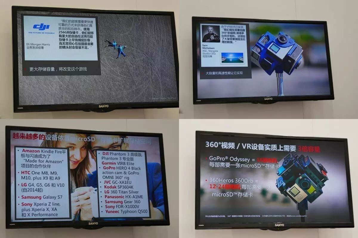 在今天的沟通会上,我们看到了诸如大疆精灵系列飞行器、GoPro运动摄像机等多款产品的名字,而这些产品目前都已经开始加入4K视频拍摄功能,这无疑将会极大的刺激用户对于microSD存储卡容量的需求。与此同时,正如我们在这次MWCS展会上所看到的那样,VR全景拍摄已经逐渐成为新的潮流,而由于VR多角度拍摄的特性,其对于存储容量的需求更是传统4K拍摄的3倍以上!正因为如此,闪迪方面这次推出了两款不同速度的256GB microSD——至尊高速提供给普通用户拍摄长时间的1080p视频用,而至尊极速则会给专业4K用户使用。当然,他们未来肯定还会提供更高速度的至尊极速Pro UHS-2存储卡...