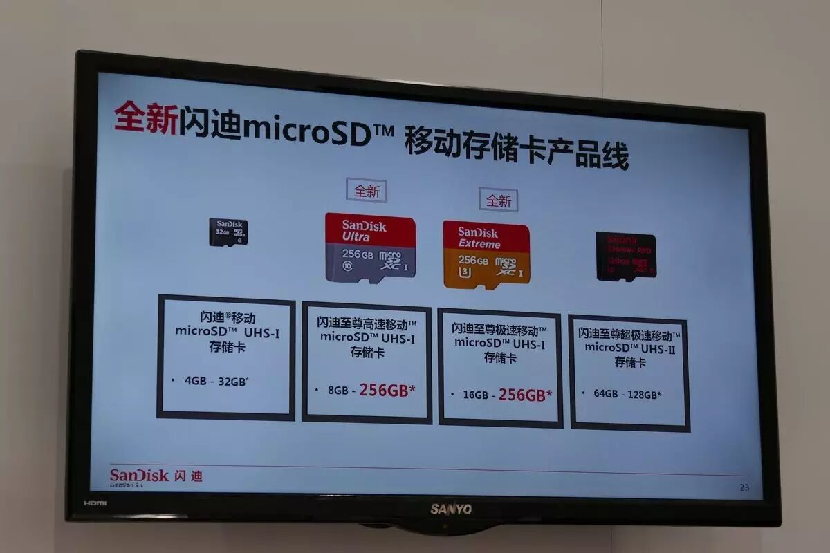 一行“西部数据旗下品牌”的字样——甚至会议室里的多国时钟上也出现了加州Milpitas(西数总部)的时钟;另一个则是他们正式发布两张容量高达256GB之巨的microSD存储卡,分别为预计售价150美元的