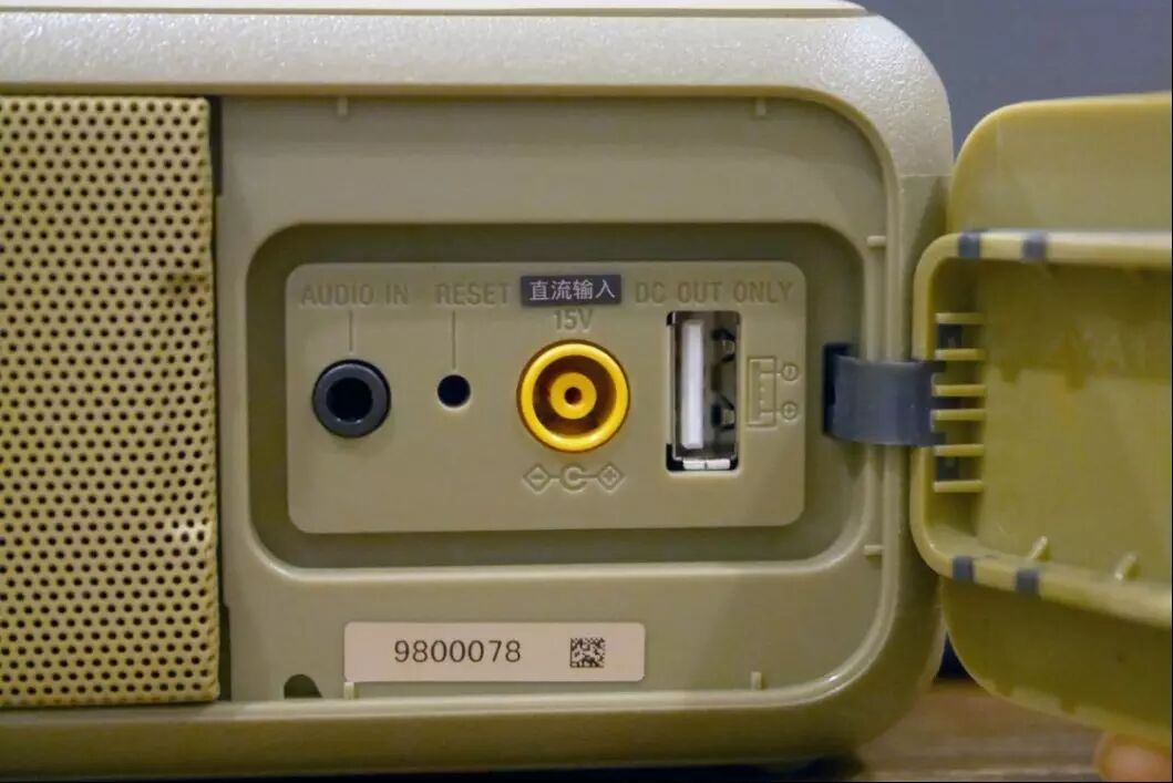 在机身背面的保护盖中,放置有USB、DC IN、Line in等接口,以及一个reset按键。