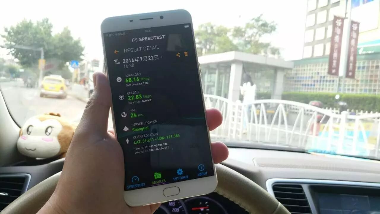 我在平时生活/工作的一些区域用OPPO R9 Plus跑了一下测速软件,发现在市区大部分位置都能搜索到4G 信号。在我工作的上海火车站北广场附近网速在下行45、上行20;在家里领导工作的西郊百联附近则能达到下行68、上行22;而我在靠近周浦的家里速度与公司接近。坦率的说,这几个成绩虽然可以接受(只比我的移动网速略快)但并没有我预计的那么好。@影像控Maxtwell 解释说目前电信依然加紧电信基站的建设,而且他之前在南京西路附近已经多次测得百兆以上的下行速度,这无疑是4G 在发挥威力。