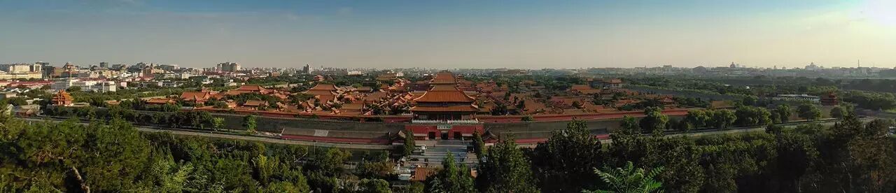 四、天色渐晚,朋友热情赶来请我去故宫附近的某著名饭馆用晚餐,还顺便给我带来了一个小支架让我能方便的把天机7安装到三脚架上。于是,我对朋友说咱们先不忙吃饭,而是一口气爬上景山用全景模式拍下故宫大场景,然后再趁着最后一线晚霞从经典的角度记录下故宫角楼的剪影。
