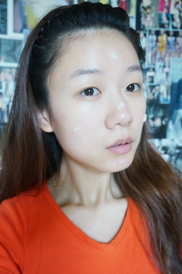有时候天气干燥,皮肤缺水就很容易影响妆容的完整,时间一长,眼周就很容易有干纹,特别是我感冒时候一直擦鼻涕,鼻翼两侧就很容易蜕皮。这个时候水蜜桃凝露就派上用场了,取点点在手心上,双手按压开,然后用手按压式地拍在脸部干燥的地方,一般眼周、嘴周是最需要补水的地方,轻轻按压之后,肌肤就会重回水润,使用之后完全不会化妆。