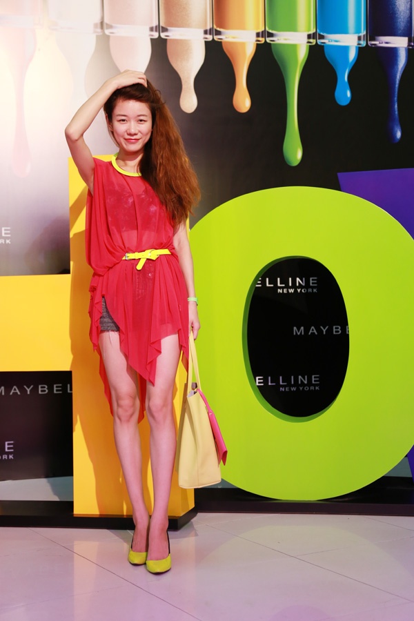 玫红色垫肩罩纱透视出里面的复古胸衣和高腰热裤(是以前的喇叭裤剪的)。