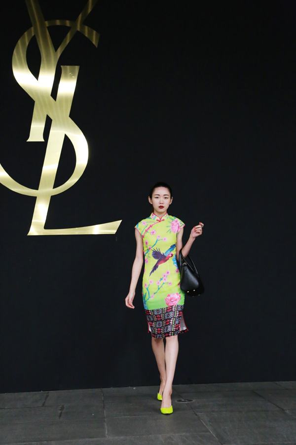 旗袍,但不止是旗袍,搭配了荧光、金属、阔腿裤等现代元素。