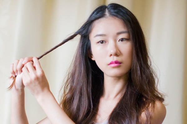 7.把上面挑起的头发放下,遮住夹发夹的地方,完成。