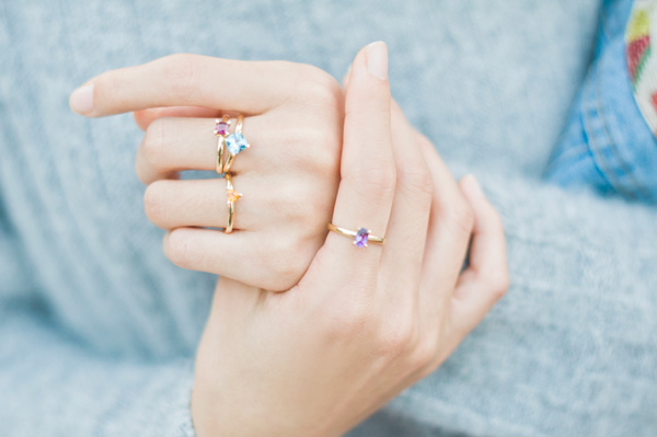 戒指之所以买了好几个颜色是因为可以混搭着戴,还有很多颜色和形状可以选,我选的这几个颜色配起来很缤纷,和心情一样美好,也可以有很多种组合方式来佩戴,很自由,和心一样,自由。缤纷的宝石颜色如彩虹般,这些迷人的色彩和你一样打动我的心弦。
