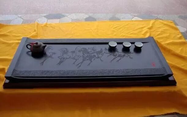 2、茶盘:茶盘是用来盛茶杯的,材质广泛,款式多样,圆月形、棋盘形……等等。但不管什么材质和式样,最重要也是四诀:宽、平、浅、白。就是盘面要宽,以便就客人人数多寡,可以放多几个杯;盘底要平,才不会使茶杯不稳,易于摇晃;边要浅,色要白,这都是为了烘托茶杯、茶壶,使之雅观。