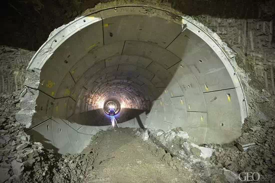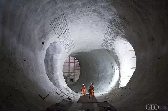 照片表现了在crossrail内部直接作业的10000个工作人员的部分工作场景,展现了面积高达42公里的地下施工空间。目前已于40多处进行了施工,在五年的建设后,近90%的火车隧道已经完成。