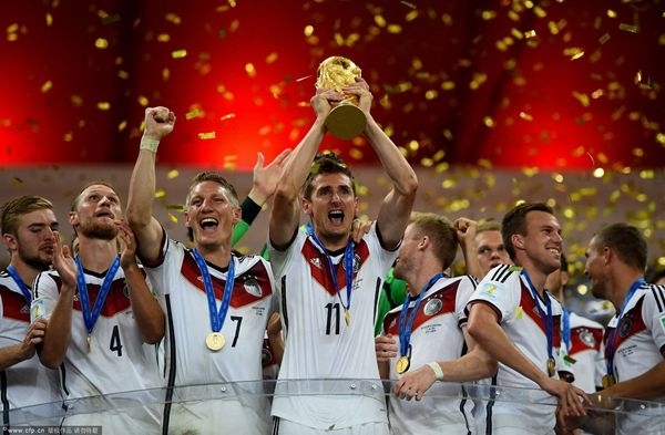 ▲当地时间7月13日,2014年巴西世界杯决赛在著名的马拉卡纳体育场进行。凭借着格策在加时赛中的进球,德国队以1∶0战胜阿根廷队,历史上第四次捧起了世界杯。
