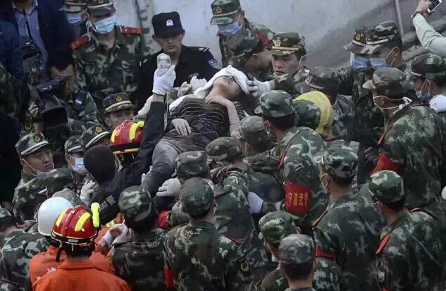 ▲4月4日,浙江省奉化市锦屏街道居敬小区第29幢居民住宅楼西侧房子发生坍塌,救援人员将一名被埋压的女子成功救出。摄影:韩传号 / 新华社