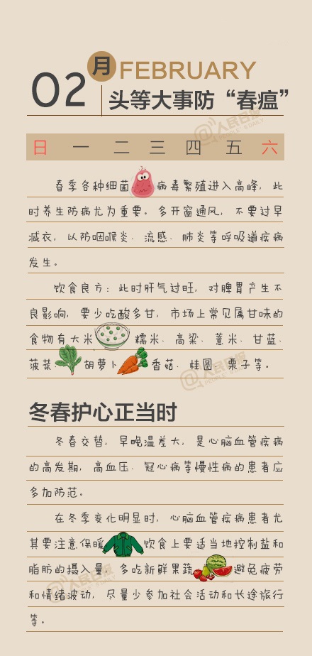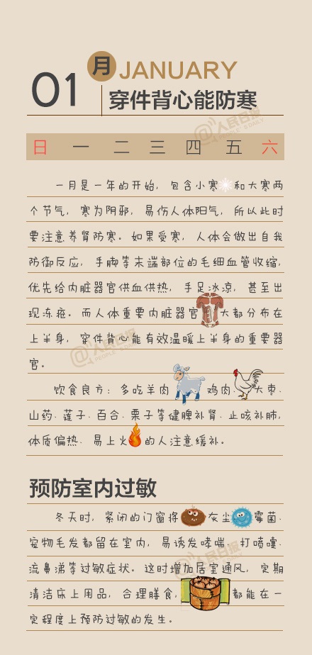 新年第一个工作日,你是不是已经踌躇满志,给自己定下了新的目标?但你的身体准备好了吗?要知道“身体是革命的本钱”,健康才是众多“0”前面的“1”。2015年健康日历,为你标注出每个月的防护重点↓↓为你和家人的身体健康,转发收藏!