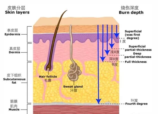烫伤属于烧伤的一种,根据受累的皮肤深度不同,可分为 I 度、浅 II 度、深 II 度、III 度。虽然大多数烫伤病例没有生命危险,但深 II 度以上烧烫伤会在患处留下明显疤痕,除了造成不小经济负担,更给患者及家属带去挥之不去的心理阴影。