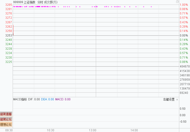 分时就相当于1分钟K线收盘价的连线,所以相同时看多个分时指标的童鞋可以用1分钟K线图,在下面添加各种指标就可以了;