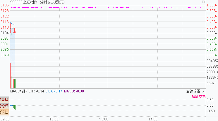 在指数分时百分比零轴处有红绿柱状线,类似MACD柱线,这是反映大盘即时所有股票的买盘与卖盘在数量上的比率。