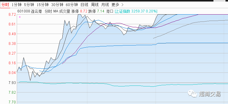 还有再延伸的就是:分时也是可以添加均线显示的,习惯看均线的同学也可以添加,如下图这样显示(我个人习惯添加30均线):