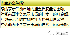 2、红绿线条:代表了该指数板块内所有个股的卖五与卖五盘口挂单金额情况;