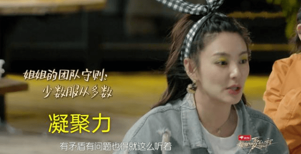 不仅能化解尴尬,张雨绮还提出少数服从多数的原则,有号召力和凝聚力,控场领导范十足,而且大家的关系也被她带的非常融洽和睦,不仅是打破话题僵局的“氛围搅拌机”,并且引导大家一起深度去思考和探索节目之于女性的意义。