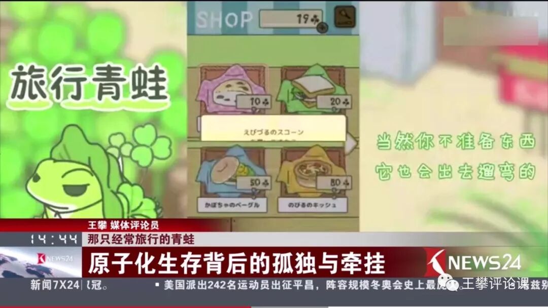 按照新闻评论的定义,“新闻评论是针对现实生活中新近发生的、具有普遍意义的新闻事件以及迫切需要解决的社会问题或公众广泛关注的社会话题,发表议论、做出分析、讲明道理、直接发表意见的文体或节目样式”,作为选题,《旅行青蛙》显然是比较符合的。