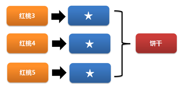 张小明先找到红桃1,就可以得到1个星星, 1个星星可以兑换1个饼干哦(儿童最喜欢的)。