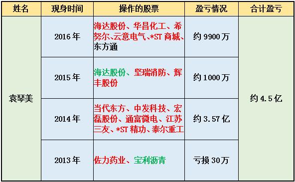 四年时间,袁琴美从股市里拿走了约4.5亿的利润,平均一年1.12亿。