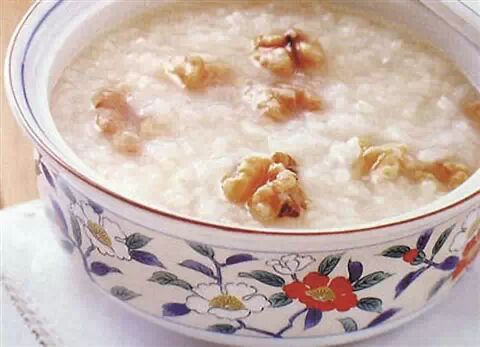 花生有“长生果”的美称,具有润肺、和胃、止咳、利尿、下乳等多种功能。核桃仁具有补肾纳气、益智健脑、强筋壮骨的作用,还能够增进食欲、乌须生发,核桃仁中所含的维生素E更是医药学界公认的抗衰老药物。