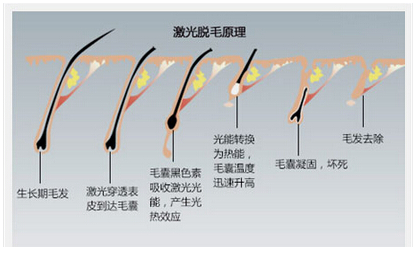激光选择性的被毛发和毛囊中的黑色素颗粒吸收,非常安全,不会破坏汗腺,完全没影响肌肤正常排汗……