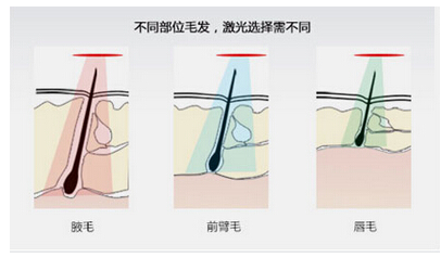 毛发生长有三个时期:生长期、静止期和退行期,只有生长期的毛发吸光而产生治疗作用。身体平时只有一部分的毛发处于生长期,所以激光、光子脱毛治疗并不能一次成功,一般需要多次的治疗才能达到理想的效果,两次治疗间隔时间根据部位而定,通常间隔一到三个月。治疗3-5次,效果永久,不反弹。