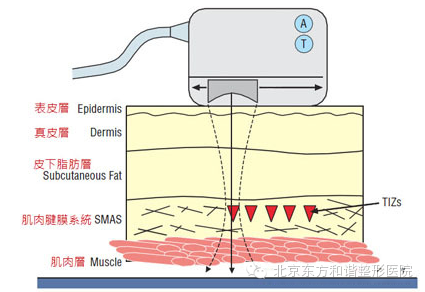 超声刀:1.5mm,3.0mm,4.5mm,可透过同步的超声波扫描,精准作用在极深的筋膜层(SMAS),非手术美容只有超声刀可以到这一层,达到无创手术拉皮的效果。